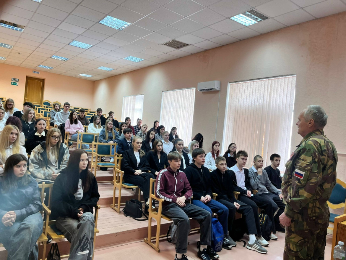 Урок мужества был посвящен особенностям ведения современных военных конфликтов, важности борьбы против экстремизма, терроризма, а также героизму бойцов-участников СВО.