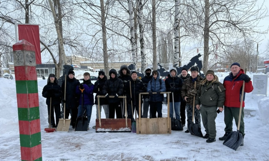 В сквере «Патриот» прошёл субботник «Снежный десант», объединивший ветеранов боевых действий и юнармейцев. Участники полностью расчистили от снега все арт-объекты и площадки сквера.