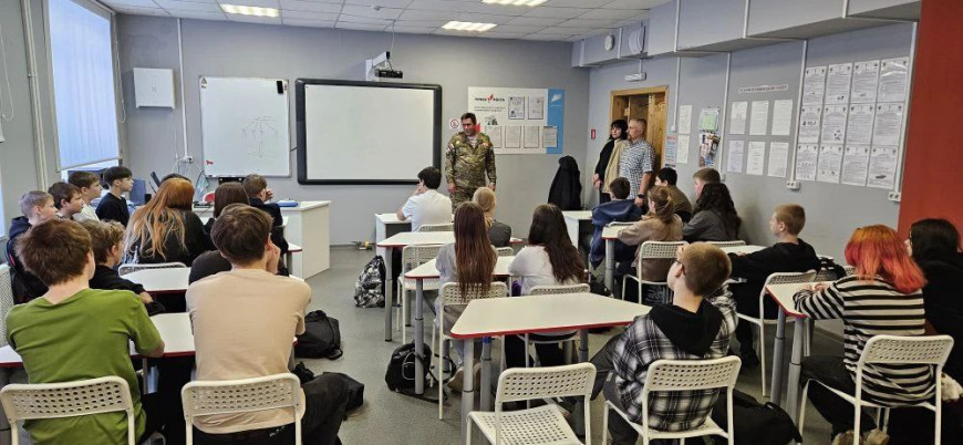 20 февраля урок мужества» для школьников в Вилючинске провели ветераны СВО из местного отделения «БОЕВОГО БРАТСТВА» Андрей Орехов и Константин Разуваев.