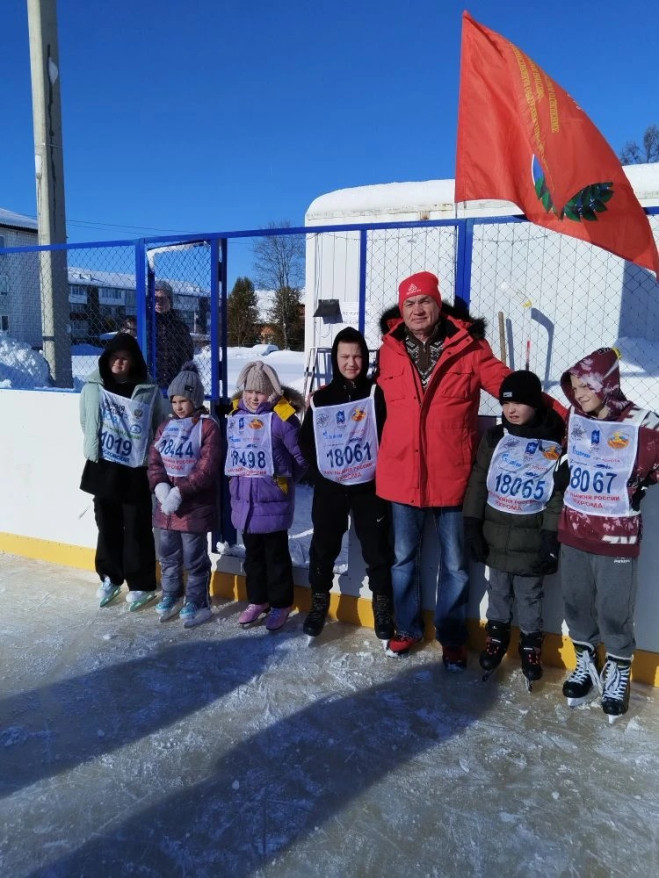 На сельском катке прошёл праздник спорта: эстафеты на коньках, командные конкурсы и подвижные игры. Мероприятие было направлено на популяризацию здорового образа жизни и патриотическое воспитание молодёжи.