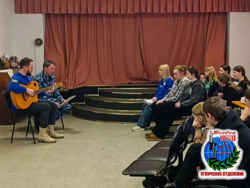 25 февраля для 5-9 классов Крюковской школы представитель Угличского отделения «БОЕВОГО БРАТСТВА» Круглов Александр и члены организации «Волонтёры Победы» Виноградов Илья и Миролюбова Дарья провели урок мужества на тему: «Что значит служить Отечеству?»