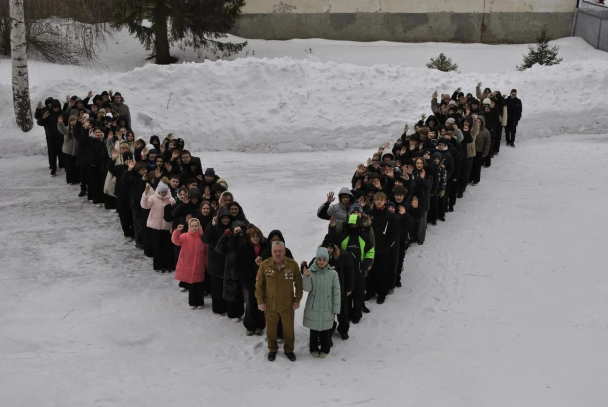 Старшеклассники провели во дворе акцию «Победа будет за нами». Мероприятия прошли в годовщину начала Специальной военной операции.