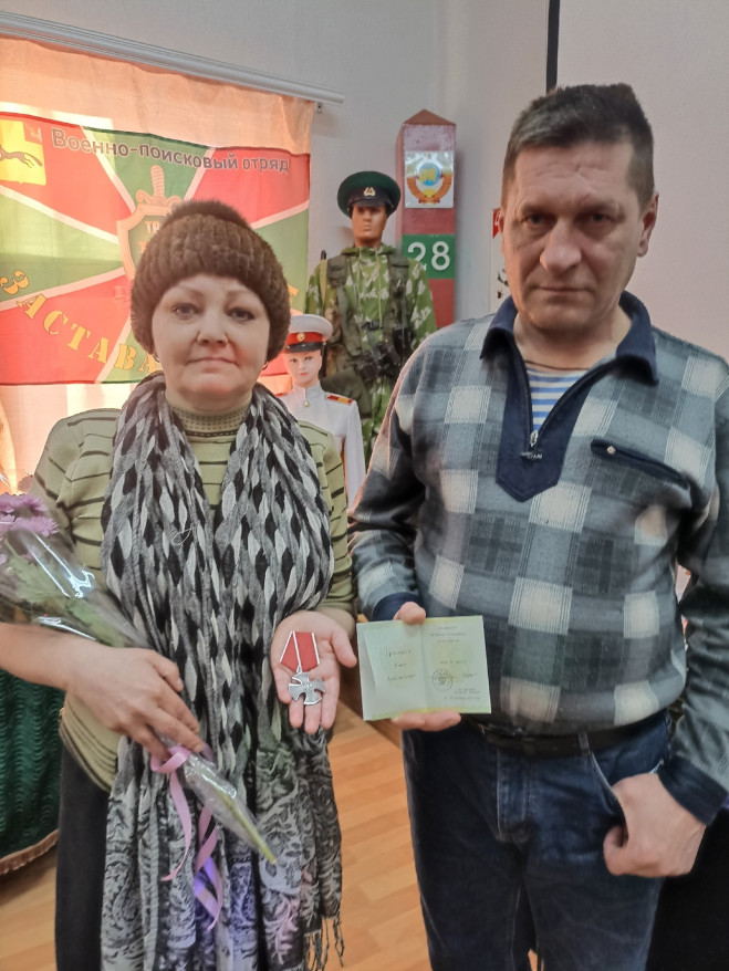 В ходе мероприятия помощник военного комиссара, член Тотемского отделения Сергей Семенихин передал орден Мужества матери погибшего в зоне проведения Спецоперации Павла Бронникова Ольге.
