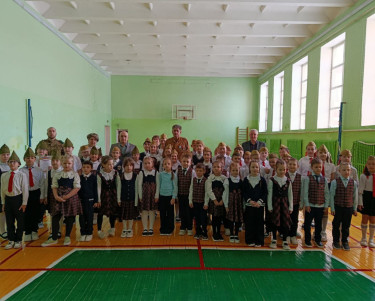 На общешкольную линейку собрались ученики, педагогический коллектив, в качестве почетного гостя был приглашён руководитель Кузнецкого отделения «БОЕВОГО БРАТСТВА» Вадим Барышников.