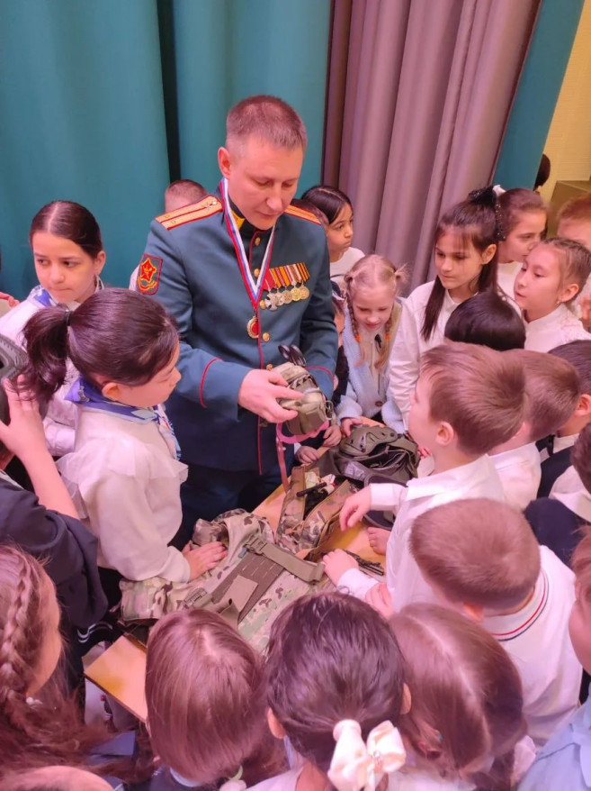 Он рассказал ребятам об участии в Специальной военной операции, дружбе между сослуживцами.