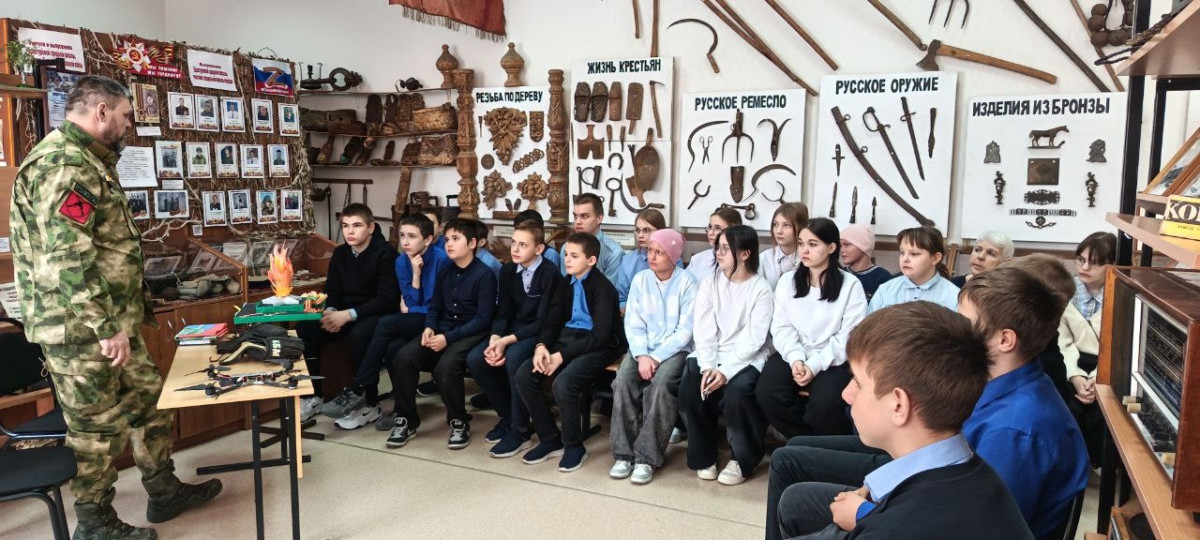 Учащиеся встретились с руководителем Шиловского отделения, ветераном боевых действий, участником СВО Владиславом Кишкиным. Он поделился воспоминаниями о воинской службе, ответил на вопросы ребят.