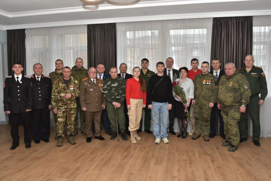 В администрации состоялась церемония вручения награды — медали “За боевые отличия” ефрейтору, начальнику радиостанции взвода связи ремонтно-восстановительного батальона Артёму Колмыкову за отвагу и самоотверженность, проявленные при выполнении задач в боевых условиях и при проведении специальных операций в условиях, сопряжённых с риском для жизни.