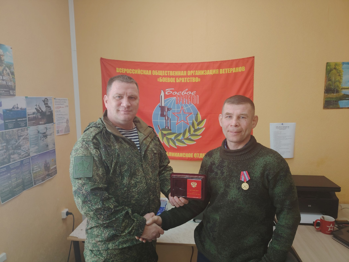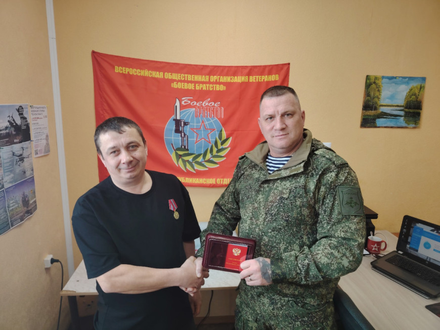 3 марта руководитель Корткеросского местного “БОЕВОГО БРАТСТВА” Илья Галимов вручил памятные медали “Ветеран боевых действий” членам отделения Роману Моторину и Василию Габову.