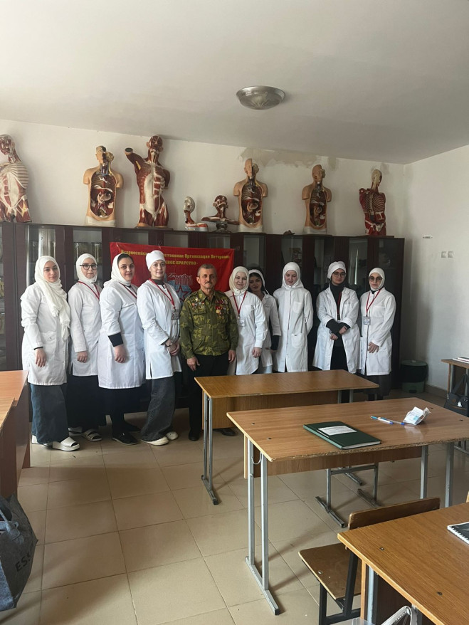 5 марта замруководителя Буйнакского городского отделения “БОЕВОГО БРАТСТВА” Анварбек Арсланов провел урок мужества со студентами медицинского училища.
