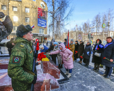 В столице региона возложили цветы к монументу «Вечная память воинам Югры»