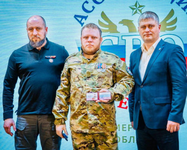 Алексей Савин вручил Герою РФ Алексею Асылханову удостоверение Ассоциации ветеранов СВО