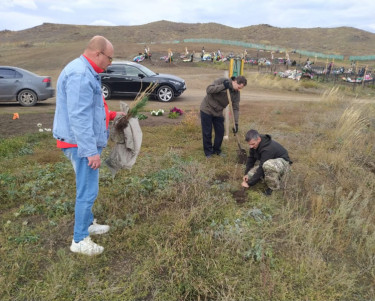 Медногорские ветераны высадили аллею Памяти на Блявтамакском кладбище