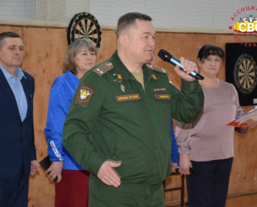 Ветеран Денис Андреев выступил с речью на турнире по дартсу