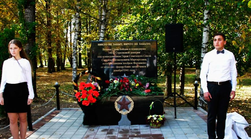 21 сентября – в день 115-летия Героя Советского Союза Саркиса Мартиросяна, в Калужской области был открыт памятный знак бойцам и командирам 340 стрелковой дивизии освобождавших под командованием Мартиросяна, Ферзиковский район Калужской области от немецко-фашистских оккупантов в декабре 1941 года. Проект был реализован совместными усилиями администрации Ферзиковского района, правительства Калужской области, местного политсовета партии «Единая Россия», Ферзиковского районного отделения Всероссийской организации «БОЕВОЕ БРАТСТВО» и Калужского регионального отделения Союза армян России. В памятном мероприятии приняли участие жители района, представители ветеранских и молодежных организаций, которые почтили память солдата минутой молчания. Перед собравшимися выступили представители руководители района, и председатель совета районного отделения Всероссийской организации «БОЕВОЕ БРАТСТВО» Михаил Балашов.