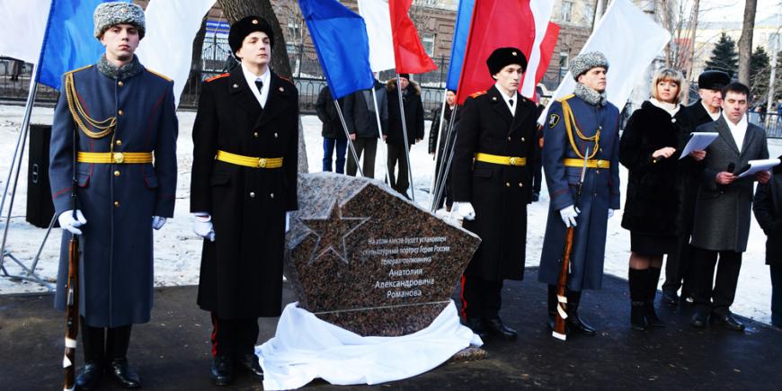 20 февраля, по инициативе Саратовского областного отделения Всероссийской организации «БОЕВОЕ БРАТСТВО», СРО ООО «РСВА», при поддержке администрации города Саратова, Фонда имени «Героя России» Анатолия Романова, с участием Саратовского Военного Краснознамённого института Войск национальной гвардии РФ, состоялось торжественное открытие Аллеи, посвящённой Почётному гражданину города Саратова, Герою Российской Федерации, заместителю министра внутренних дел РФ — командующему внутренними войсками МВД России, объединённой группировкой Федеральных войск в Чеченской республике, генерал — полковнику Романову Анатолию Александровичу и закладка камня на месте установки объекта монументально-декоративного искусства: Памятника-скульптурного портрета Анатолию Александровичу Романову, который будет установлен в июне месяце 2017 года.