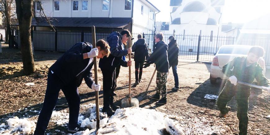 В Великую Субботу прихожане храма святой праведной Анны провели субботник по уборке прилежащей территории. Приняли в нем участие и курсанты военно-патриотического клуба «Легион».