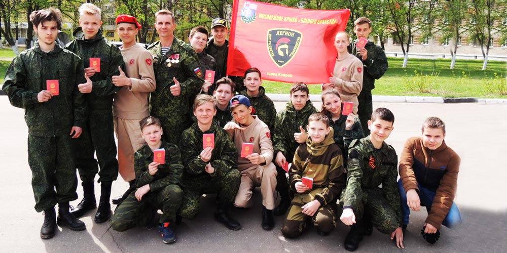 После коротких напутствий воспитанники ДЮСШ прочитали стихи о войне, и участники мероприятия возложили цветы к Вечному огню. За тем курсантов военно-патриотического клуба «Легион» дали Клятву, вступая в ряды молодежного крыла Всероссийской организации «БОЕВОЕ БРАТСТВО» и получили удостоверения. Документ каждому юнармейцу вручал глава администрации г. Коврова А.В. Зотов. Для каждого из 21 курсанта, давшего клятву в этот день, Анатолий Владимирович нашел слова напутствия. Будучи офицером в отставке, глава города смог по достоинству оценить строевую выправку и уровень подготовки юнармейцев.