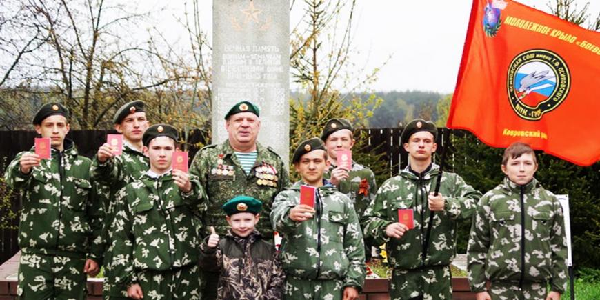 В п. Достижение в этот день произошло еще одно знаменательное событие. Воспитанники И.А. Власова, юнармейцы военно-патриотического клуба «Гром», дали клятву на вступление в молодежное крыло «БОЕВОГО БРАТСТВА». Удостоверения ребятам вручала начальник Управления образования Ковровского района И.Е. Медведева.