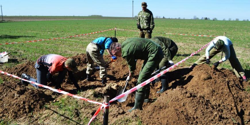 – Со 2 по 5 мая (включительно) при проведении поисковых работ на территории Рогачевского района, Гомельской области были обнаружены останки 27 бойцов и командиров Красной Армии погибших в июле 1941 года и останки одного воина Красной Армии погибшего в июне 1944 г. На останках погибших воинов были найдены 8 смертных медальонов и 2 медали «За отвагу». Установлены имена 5 найденных воинов. Территориально найденные воины из Пензенской области (3 человека), Свердловской области и Воронежской областей (по 1 человеку). Относительно частей Красной Армии, в которых служили найденные по боям июля 1941 погибшие воины – это 61 и 167 стрелковых дивизий, вероятно, 1 и 3 батальоны 465 стрелкового полка 167 сд. – сообщает руководитель поисковой группы «Батьковщина» Дударёнок Александр.