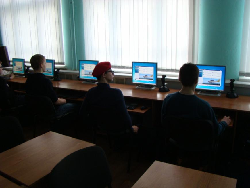 Юнармейцы осмотрели школу и потренировали навыки виртуального управления различными видами самолетов. Особый восторг занятия по виртуальному пилотированию вызвали у юнармейцев Тимофея Семенова и Евгения Попова, мечтающих поступить в летное военное училище и стать военными летчиками.