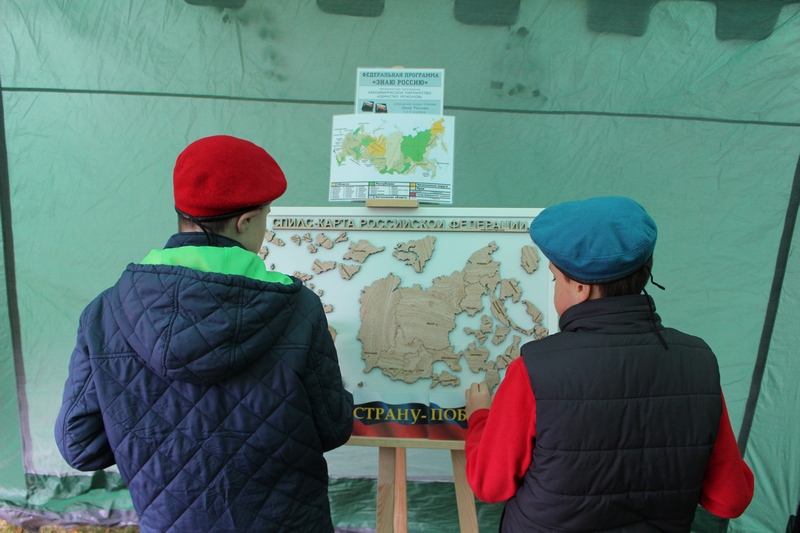 С шефами из Военного комиссариата республики, Республиканского центра патриотического воспитания и ветеранских организаций ВООВ «БОЕВОЕ БРАТСТВО» и «Союз десантников Карелии» свою площадку на мероприятии организовали и юнармейцы. Ребята предлагали всем желающим проверить свои знания географии России, собрать карту страны из пазлов, разобрать и собрать автомат Калашникова, ознакомиться с устройством полевого телефона и парашютной системы. Площадку Юнармии осмотрел глава республики, и она стала одной из самых посещаемых на празднике.