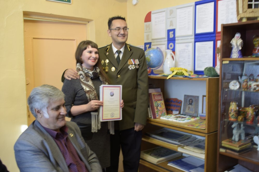 Виктор Кислов от имени руководителя Пожарского районного отделения Всероссийской общественной организации ветеранов «БОЕВОЕ БРАТСТВО» Павла Александровича Меньшикова вручил грамоты командиру отряда «Юный друг пограничника» и его заместителю, а также подарил мягкие игрушки и значки в честь 20-летнего юбилея со дня образования «БОЕВОГО БРАТСТВА».