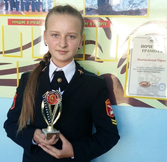 Кадету Дарье Белочистовой от Всероссийской общественной организации ветеранов за отличную учебу была объявлена благодарность.
