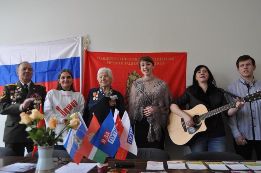 Участники встречи пели патриотические песни, исполнили гимн России, а в заключение устроили чаепитие с праздничным тортом.