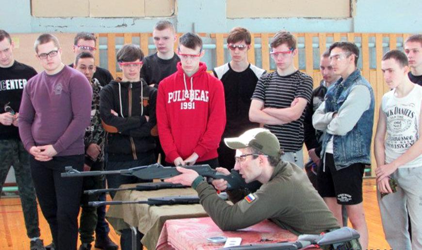 За два дня (21 и 22 марта) Виктор Сергеевич ознакомил учащихся техникума с теорией кодекса стрелка, подробно рассказал об оружии, продемонстрировал, как правильно пользоваться тем или иным видом оружия, показал технику стрельбы в мишень. Затем от теории перешли к практической стрельбе. Сначала все учащиеся делали по три пробных выстрела из пневматической винтовки по мишени, затем сдавали на зачет.