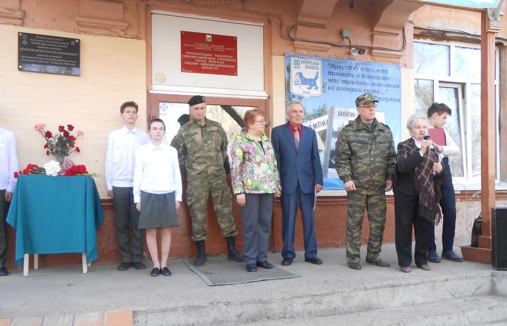В средней школе №7 города Иркутска 24 апреля прошла торжественная линейка, посвященная 18-й годовщине гибели выпускника этого учебного заведения, кавалера ордена Мужества, помощника начальника штаба ОМОН Иркутской области, капитана Вячеслава Колосова. Он геройски погиб 24 апреля 2000 года в Чеченской Республике при проведении контртеррористической операции.