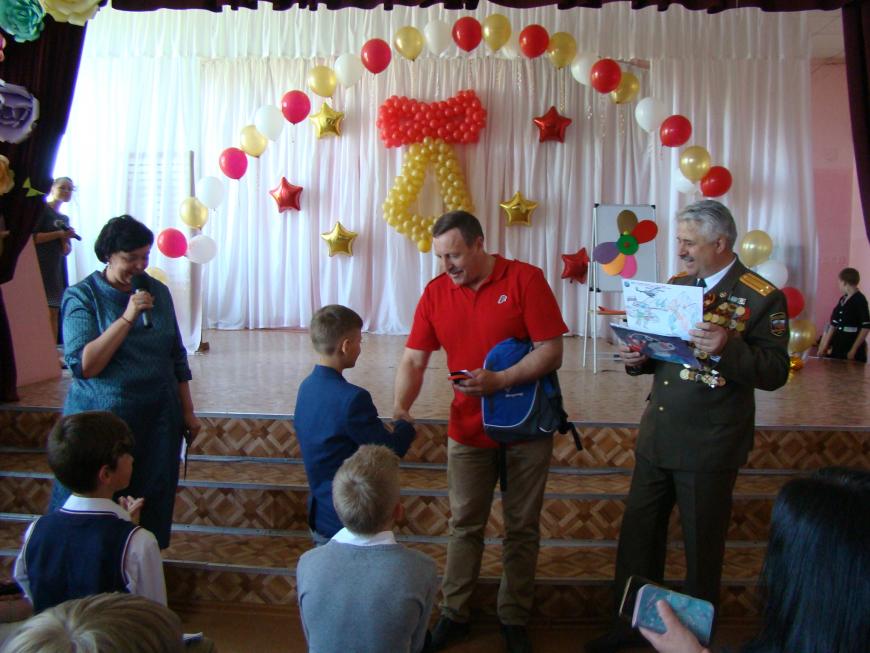 Гости поздравили выпускников с окончанием учебы, а учеников 4-х классов — с переходом в среднюю школу, рассказали о юнармейском движении России, о мероприятиях, проводимых «Юнармией» и ветеранскими организациями.