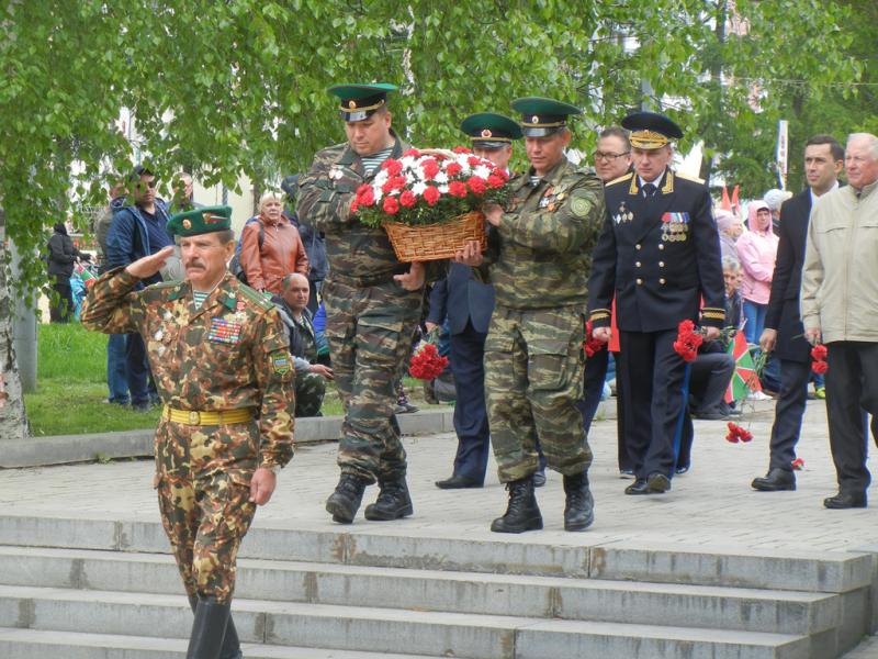 После возложения цветов к обелиску колонна пограничников направилась к мемориалу памяти «Вечный огонь», где также были возложены цветы к памятнику воинам, погибшим в годы Великой Отечественной войны 1941-1945 гг.