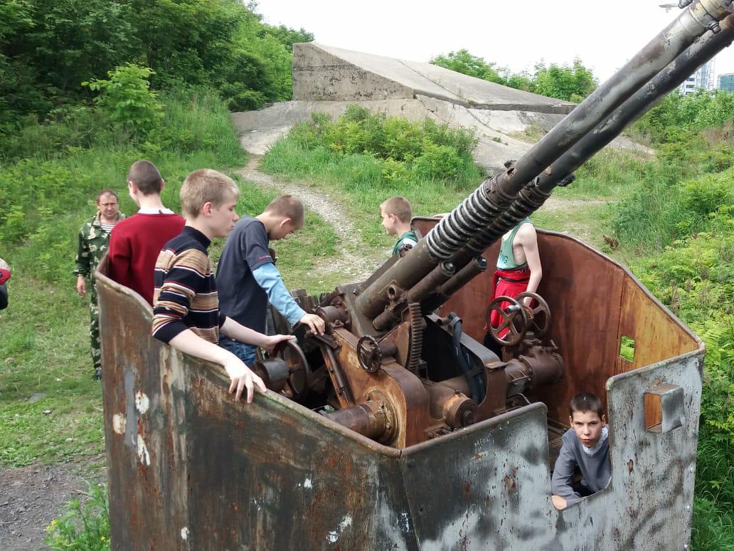 Председатель правления Фрунзенского районного отделения Владивостокского городского отделения «БОЕВОГО БРАТСТВА» Дмитрий Жердев и комендант форта №7 Г.А. Бурмистров провели экскурсию по Владивостокской крепости для учащихся школы-интерната.