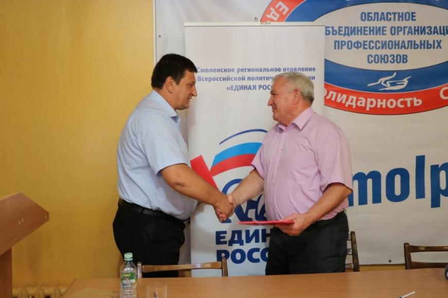 Руководитель Смоленского областного отделения «БОЕВОГО БРАТСТВА» Леонид Ананьев и секретарь Смоленского отделения партии «Единая Россия» Игорь Ляхов 9 августа подписали соглашение о сотрудничестве и взаимодействии.
