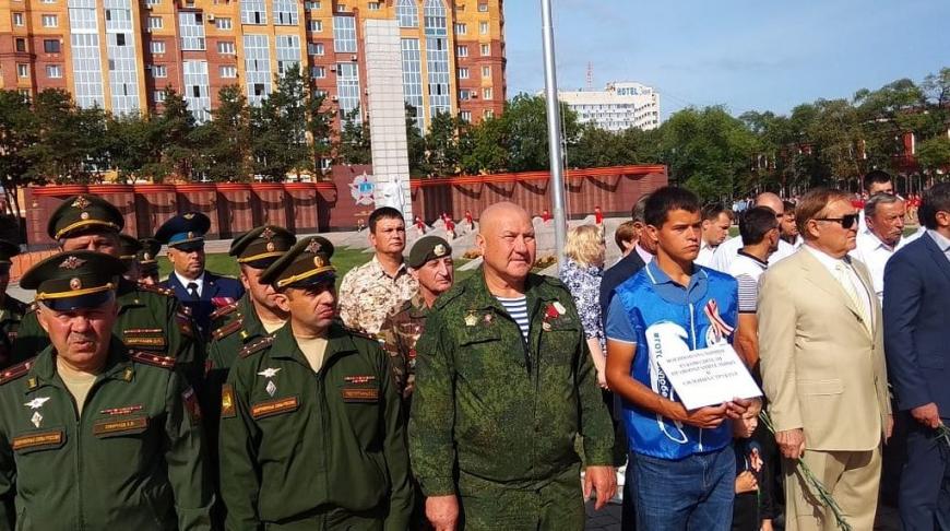 В Благовещенске ветераны Амурского областного отделения «БОЕВОГО БРАТСТВА» 2 сентября в честь 73-й годовщины окончания Второй мировой войны приняли участие в торжественной церемонии возложения венка и цветов к памятнику воинам-землякам, павшим в годы Великой Отечественной войны.