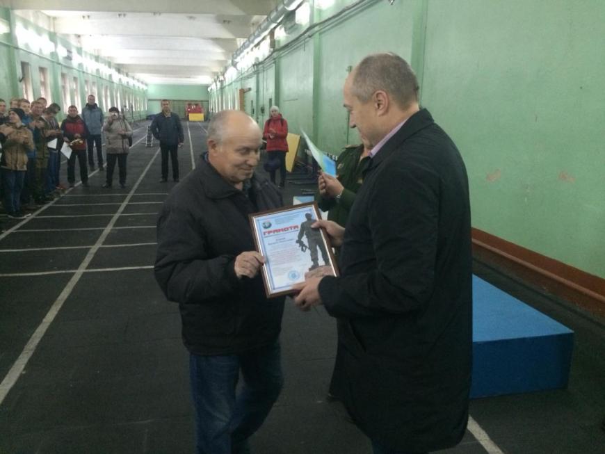В Кирове руководитель областного отделения «БОЕВОГО БРАТСТВА» Владимир Мышкин 28 сентября вручил грамоту организации инструктору стрелкового тира регионального отделения ДОСААФ России Валерию Егорову.