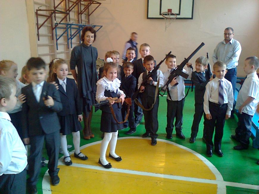 На линейке в школе, носящей имя 354-й Калинковичской орденов Ленина и Суворова краснознаменной стрелковой дивизии, присутствовали глава администрации Кузнецка Сергей Златогорский, заместитель начальника Уравления образования Светлана Фадеева, начальник местного штаба «Юнармии» Евгений Анисимов, руководитель Кузнецкого отделения «БОЕВОГО БРАТСТВА» Вадим Барышников, председатель комитета Российского союза ветеранов Петр Чугай.
