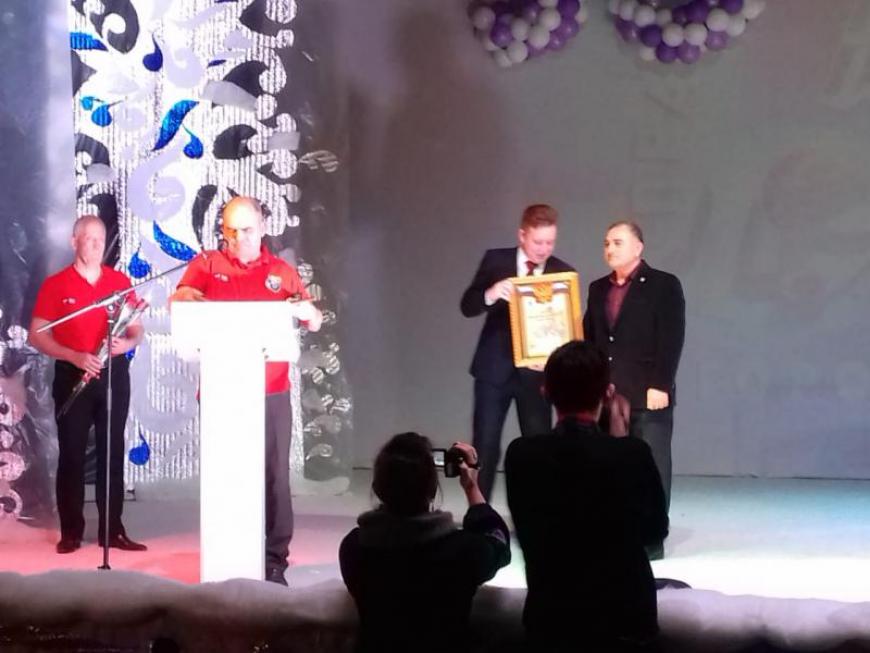 После церемонии вручения сотрудникам управления благодарственного письма и грамот состоялся праздничный концерт, на котором выступил член Байконурского регионального отделения «БОЕВОГО БРАТСТВА» А.Д. Каракозиди.
