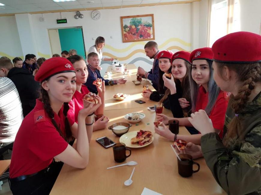 В завершение мероприятия ученики школы №9 угостили присутствующих чаем с пирогами.