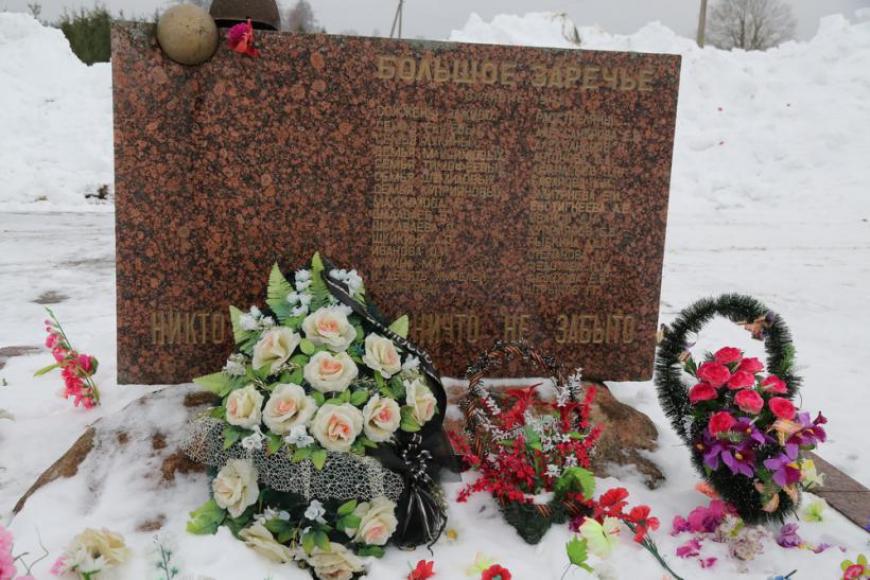 29 октября 2015 года Ленинградским областным законом установлен День памяти деревень Ленинградской области, сожженных немецко-фашистскими оккупантами. Этот день посвящен жителям более трех тысяч населенных пунктов, стертых фашистами с лица земли. В России гитлеровские войска уничтожили 70 тыс. деревень и погубили сотни тысяч жизней. Поэтому судьба Большого Заречья — одна из трагических страниц истории России.