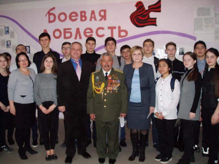 Руководитель Прохладненского районного отделения «БОЕВОГО БРАТСТВА» Кабардино-Балкарии Дисембай Тюлеганов 12 февраля провел урок мужества для 33 учащихся гимназии №2.Занятие было посвящено 76-летию Сталинградской битвы. Кабардино-Балкарская Республика