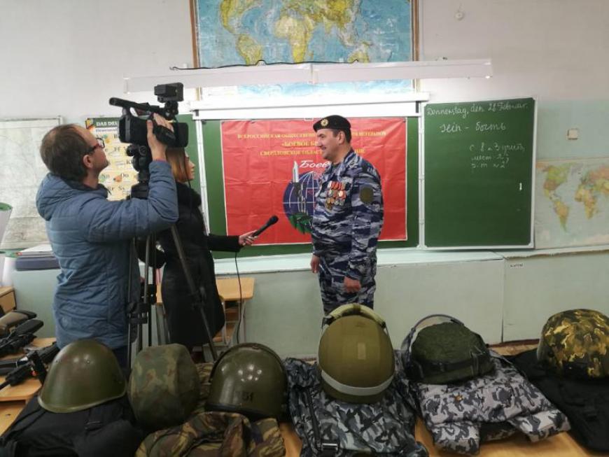 На вопросы журналистов член Нижнетагильского отделения «БОЕВОГО БРАТСТВА» отвечал во время соревнований кадетских классов школ города, которые 1 марта провела ветеранская организация. Нижнетагильское телевидение широко освещало это спортивное событие.