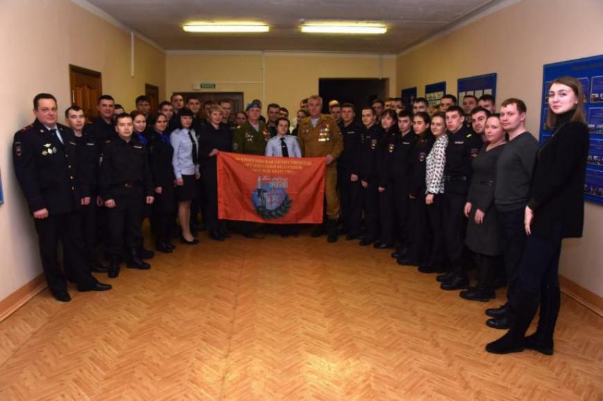 Члены «БОЕВОГО БРАТСТВА» республики Марий Эл, ветераны Афганистана 12 февраля провели урок мужества для сотрудников ОВД первого года службы. С молодыми полицейскими встретились член Общественного совета при УМВД России по городу Йошкар-Оле Александр Кузнецов и его сослуживец Владимир Старков.