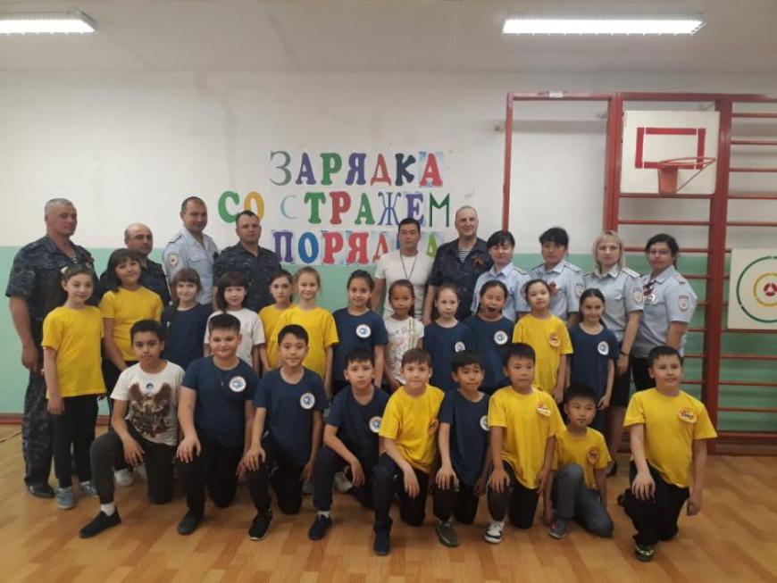 В рамках общероссийской акции «Зарядка со стражем порядка» сотрудники Управления МВД России на комплексе «Байконур» совместно с членами Байконурского регионального отделения «БОЕВОГО БРАТСТВА» и ветеранами Управления 17 мая встретились с  детьми из подшефной школы №12.