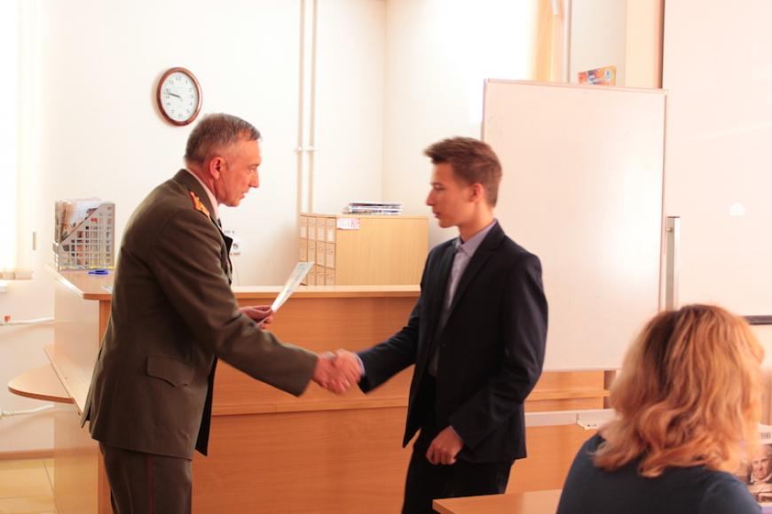 Встреча началась с награждения молодых людей с активной жизненной позицией. Евгений Иванович вручил благодарственные письма ребятам, которые на протяжении учебного года были активными участниками гражданско-патриотических акций и мероприятий.