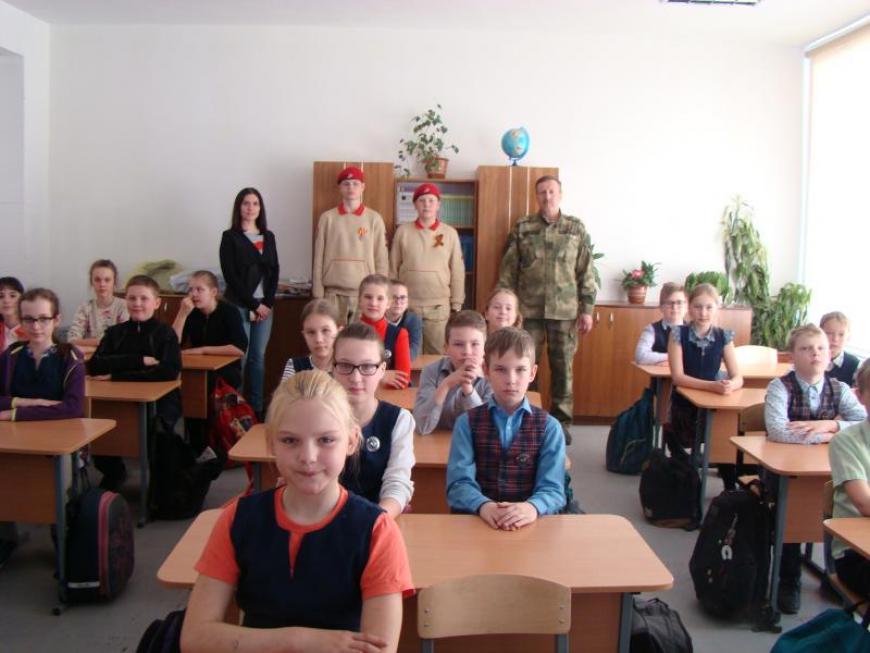 Представители военного комиссариата республики, регионального отделения «Юнармии», ветеранской организации «Патриот», организации ветеранов Вооруженных сил РФ и Карельского республиканского отделения отделения «БОЕВОГО БРАТСТВА» провели урок, посвященный 100-летию войск связи, для учащихся 4-го «А» класса средней школы №7 г. Петрозаводска.