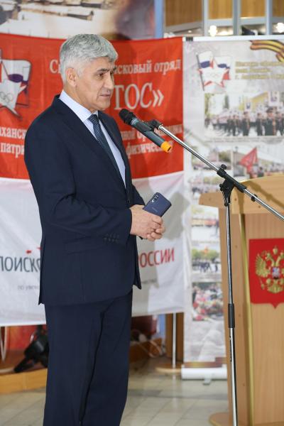 Перед участниками выступили заведующая музеем боевой славы Светлана Батаева, председатель городского отделения Всероссийской общественной организации ветеранов войны, труда, Вооруженных Сил и правоохранительных органов Виктор Твердохлебов, председатель Астраханской областной общественной организации по патриотическому, правовому и физическому развитию молодежи, председатель регионального отделения ООД по увековечению памяти погибших при защите Отечества «Поисковое движение России» Александр Даиров.