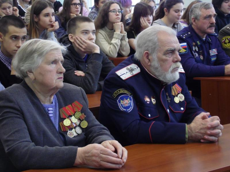 Дитя войны Н. Кондратьева поделилась с присутствующими своими воспоминаниями о жизни в Ленинграде во время блокады. Рассказ блокадницы очень заинтересовал студентов и ветеранов.