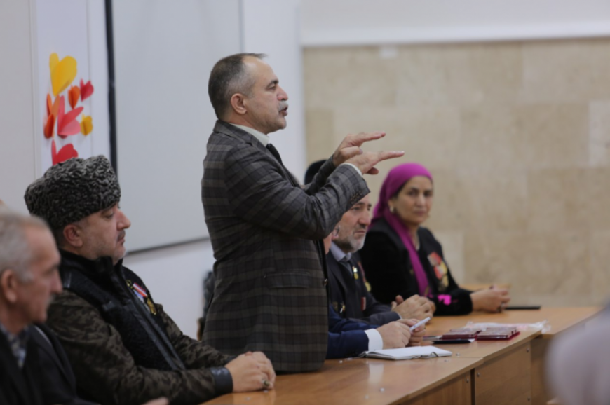 Депутат Парламента Чеченской Республики, руководитель Чеченского отделения «БОЕВОГО БРАТСТВА» Саламу Асуев 09.12.2019 г. принял участие в мероприятии, приуроченном ко дню Героев Отечества. Встреча прошла в стенах Чеченского государственного университета, где парламентарий рассказал студентам о героизме выходцев из чеенского народа на всех этапах становления Российского государства. Рассказал депутат и о героях наших дней, которые отдали свои жизни во благо и процветания Чеченской Республики и за целостность Российской Федерации. По завершении мероприятия Саламу Асуев вручил юбилейные медали «30 лет вывода войск из Афганистана» участникам Афганской войны и служащим военного комиссариата.
