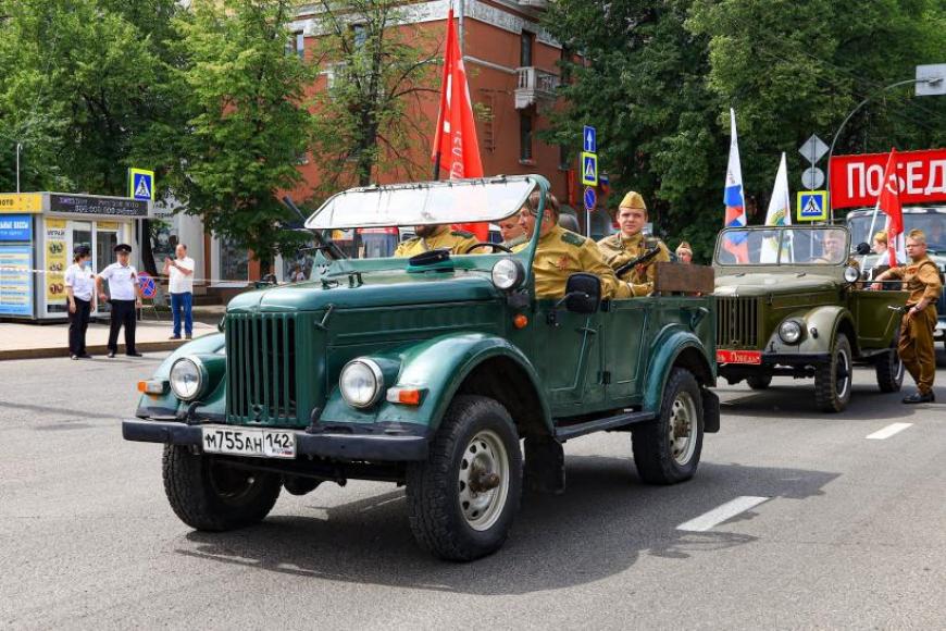Парад открыл участник боевых действий под Псковом — танк Т-34, прошедший по главному проспекту города. Следом пешими колонами прошли сотрудники силовых структур и военных ведомств. Далее прошла колонна ретро-техники и участники патриотической Эстафета памяти «Кузбасс-Фронту!», представители Российского союза ветеранов Афганистана и «БОЕВОГО БРАТСТВА».